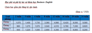 Ảnh học phí khóa học Business English 📌 Có thể bạn quan tâmKhóa TOEIC – Trường Anh ngữ PINESChương trình Trại hè – trường Anh ngữ Help, PhlippinesKhám phá Đất nước Philippines – “Thiên đường” Học tiếng Anh tại Châu ÁChương Trình Cella Expresser – Trường Anh ngữ CELLA Đăng ký tư vấn miễn phíCam kết bảo mật thông tin 100%, Tư vấn hoàn toàn miễn phí