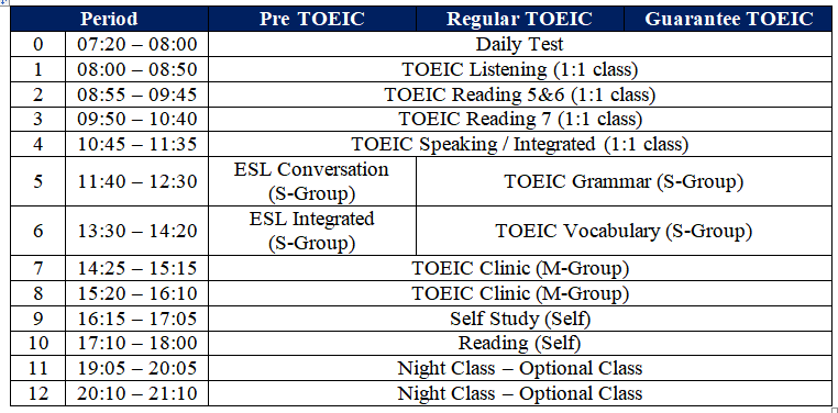 TOEIC Guarantee | Tiết Học/ Ngày |
